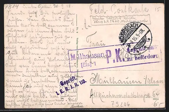 gelaufen 1915, Eckknick li. unten, Stempelspur, guter Zustand