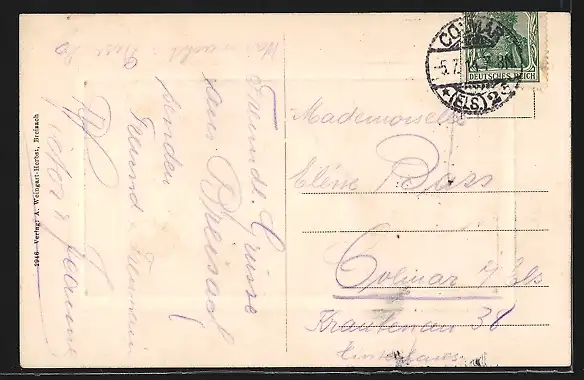 gelaufen 1914, Stempelspur, guter Zustand