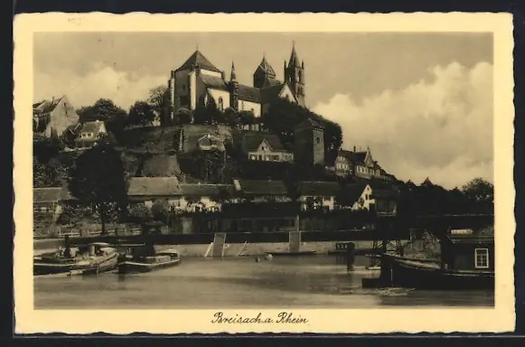 AK Breisach a. Rhein, Ortsansicht mit Schloss und Booten