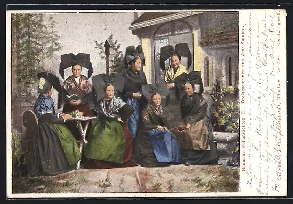AK Breisgauerinnen aus Staufen im Garten sitzend