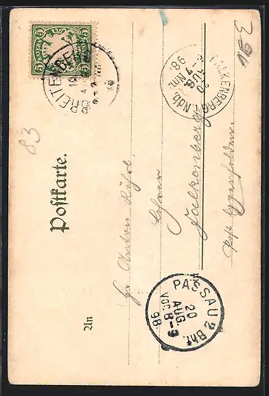 alte Ansichtskarte, gelaufen 1898, guter Zustand