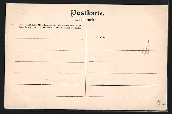 Personenbezogene Daten auf der Rückseite der Karte wurden durch blauen Textmarker unkenntlich gemacht. Die blauen Stellen sind auf die Vorderseite durchgeweicht und wirken sich negativ auf das Postkartenfoto aus