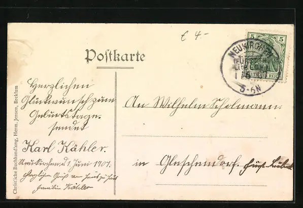 alte Ansichtskarte, gelaufen 1907, guter Zustand