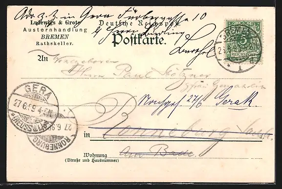 alte Ansichtskarte, gelaufen 1899, guter Zustand
