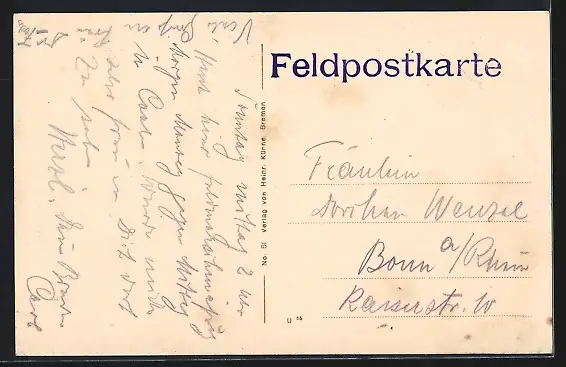 alte Ansichtskarte, ungelaufen, Bugspur und Eckknick li. oben, guter Zustand