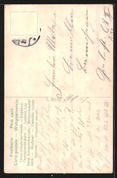 alte Ansichtskarte, gelaufen, Briefmarke entfernt, guter Zustand