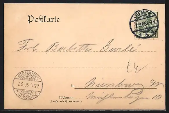 alte Ansichtskarte, gelaufen 1905, guter Zustand