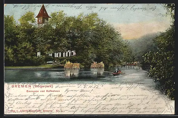 AK Bremen, Emmasee und Kaffeehaus im Bürgerpark