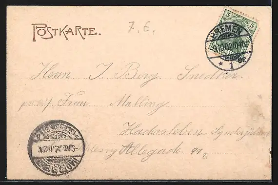alte Ansichtskarte, gelaufen 1902, guter Zustand