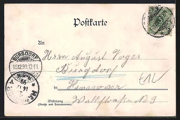 alte Ansichtskarte, gelaufen 1899, guter Zustand