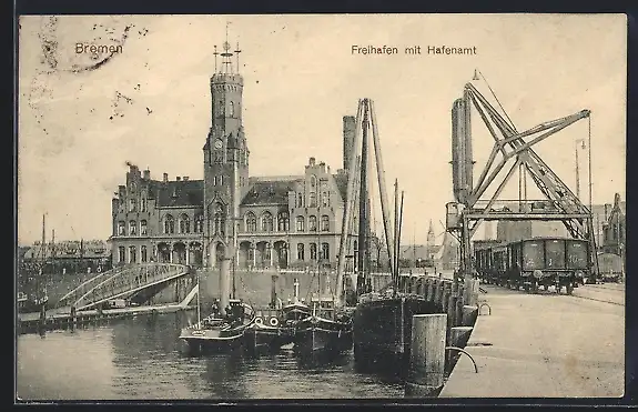 AK Bremen, Freihafen mit Hafenamt