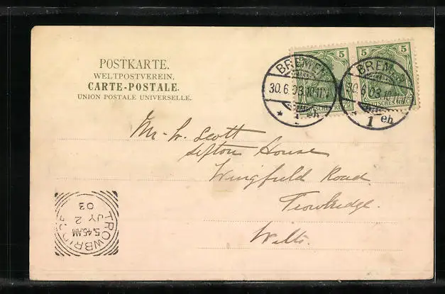 alte Ansichtskarte, gelaufen 1903, guter Zustand