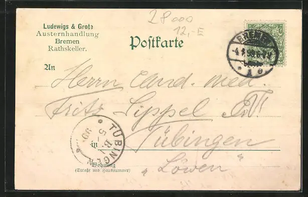 alte Ansichtskarte, gelaufen 1899, Stempelspur, guter Zustand