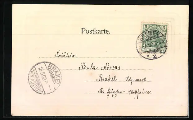 alte Ansichtskarte, gelaufen 1902, guter Zustand