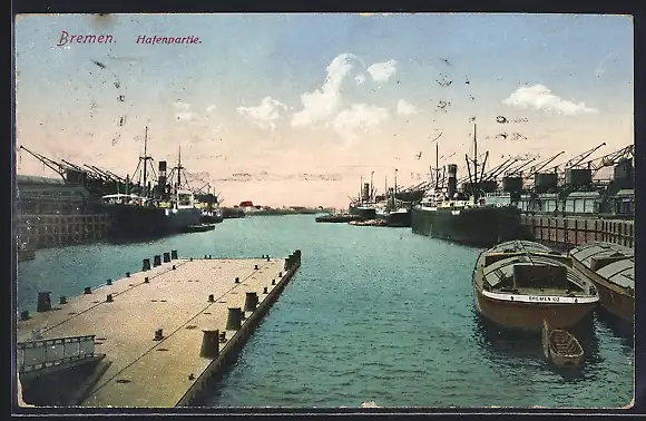 AK Bremen, Hafenpartie mit Schiffen