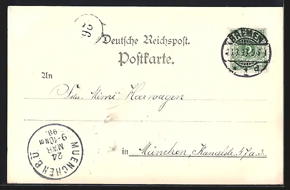 alte Ansichtskarte, gelaufen 1898, Stempelspur, guter Zustand