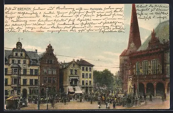AK Bremen, Marktplatz mit Rathaus