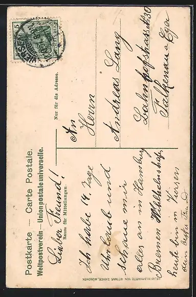 alte Ansichtskarte, gelaufen 1907, Eckknicke li., guter Zustand