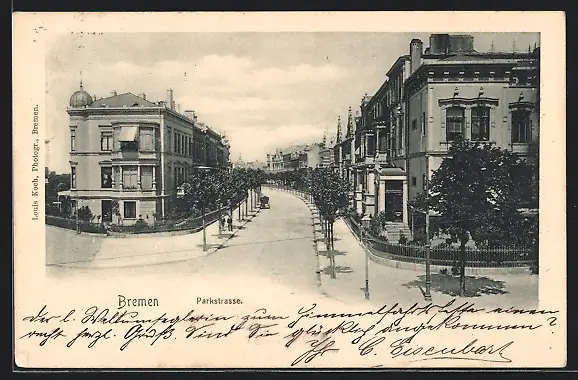 AK Bremen, Parkstrasse mit Abzweig aus der Vogelschau