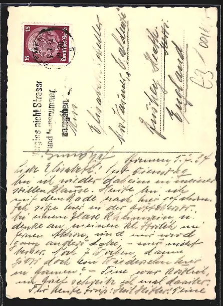 alte Ansichtskarte, gelaufen 1934, Eckknick oben li., guter Zustand