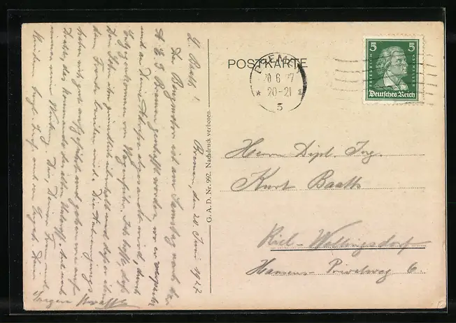 gelaufen 1927, Eckknicke links u. rechts, Bugspur re. oben, guter Zustand