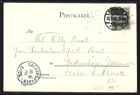 alte Ansichtskarte, gelaufen 1900, Stempelspur, guter Zustand