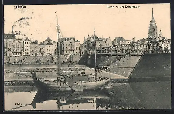 AK Bremen, Partie an der Kaiserbrücke