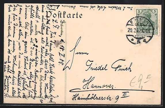 alte Ansichtskarte, gelaufen 1907, Stempelspur, guter Zustand
