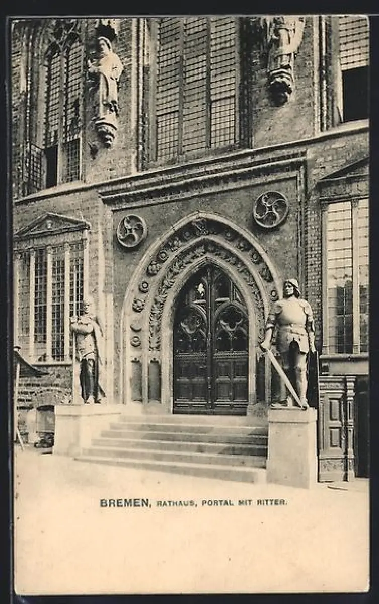 AK Bremen, Rathaus, Portal mit Ritter