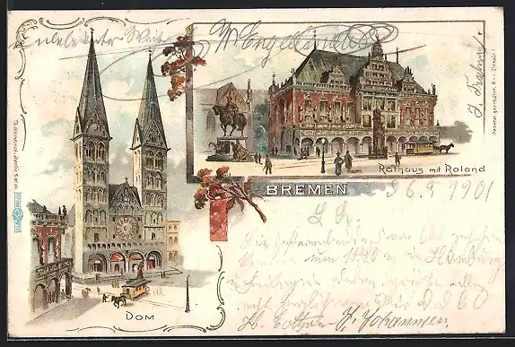 AK Bremen, Rathaus mit Roland, Dom
