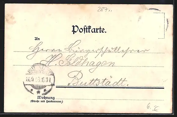 alte Ansichtskarte, gelaufen 1903, Briefmarke entfernt, rückseitig Oberflächenschaden, guter Zustand