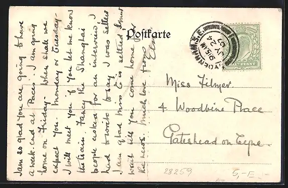alte Ansichtskarte, gelaufen 1907, Eckknicke oben, guter Zustand