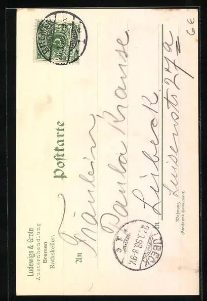 alte Ansichtskarte, gelaufen 1898, guter Zustand