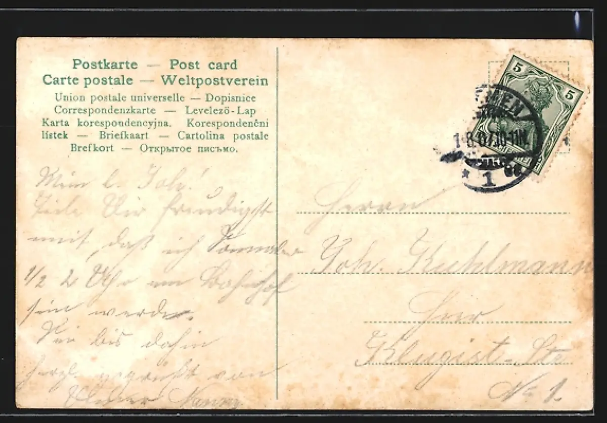 alte Ansichtskarte, gelaufen 1907, guter Zustand