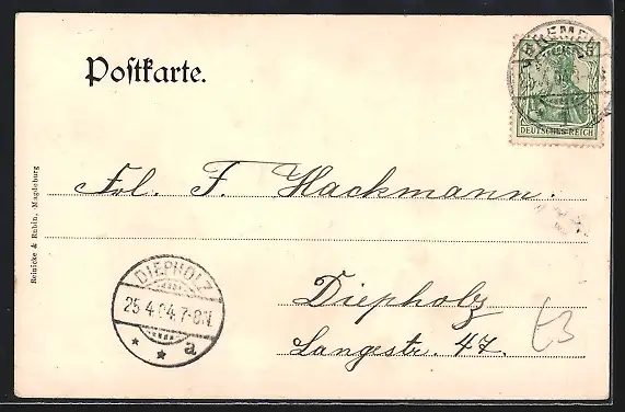 alte Ansichtskarte, gelaufen 1904, Stempelspur, guter Zustand