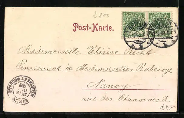 alte Ansichtskarte, gelaufen 1898, Eckknick oben rechts, guter Zustand