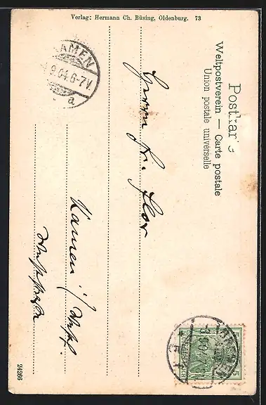 alte Ansichtskarte, gelaufen 1904, guter Zustand