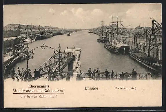 AK Bremen, Totalansicht des Freihafens