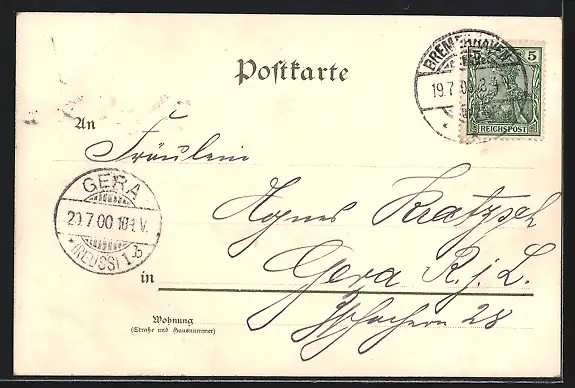 alte Ansichtskarte, gelaufen 1900, guter Zustand