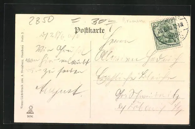 alte Ansichtskarte, gelaufen 1910, guter Zustand