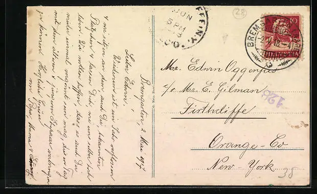 alte Ansichtskarte, gelaufen 1918, Eckknick re. oben, Oberflächenschaden, guter Zustand