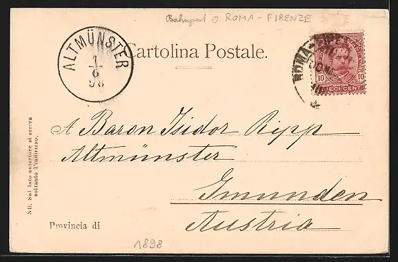 gelaufen 1898, Bugspur oben li., Stempelspur, guter Zustand