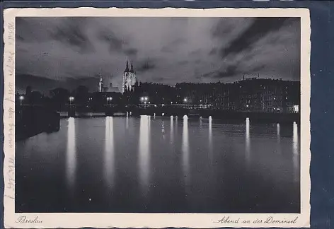 AK Breslau Abend an der Dominsel, gelaufen von 1939