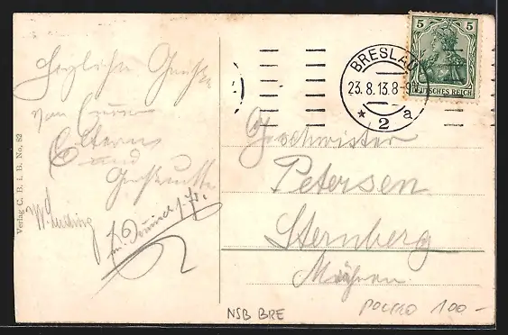 alte Ansichtskarte, gelaufen 1913, Eckknicke re., guter Zustand