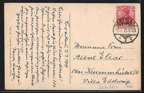 alte Ansichtskarte, gelaufen 1919, Stempelspur, guter Zustand