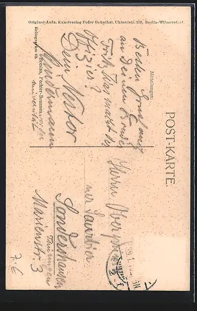alte Ansichtskarte, gelaufen, Briefmarke entfernt, rückseitig Oberflächenschaden, guter Zustand