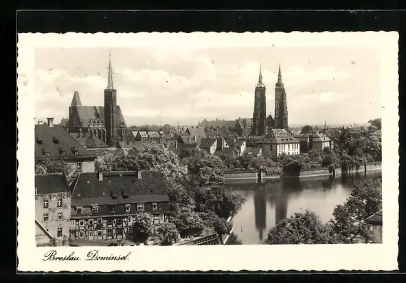 AK Breslau, Blick auf die Dominsel aus der Vogelschau