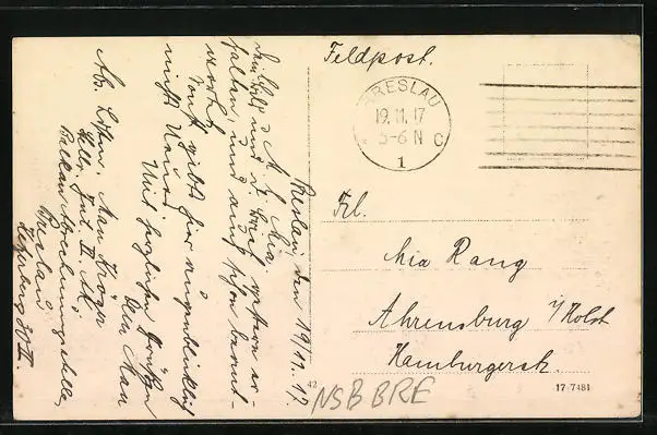 alte Ansichtskarte, gelaufen 1917, Eckknick oben li., guter Zustand