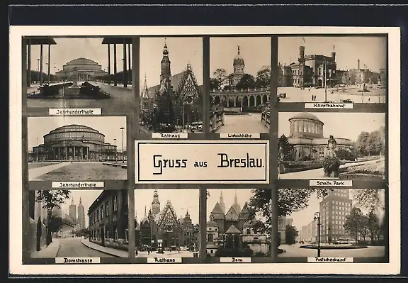 AK Breslau, Hauptbahnhof, Domstrasse, Rathaus