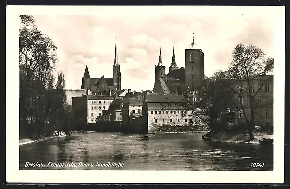 AK Breslau, Kreuzkirche, Dom und Sandkirche